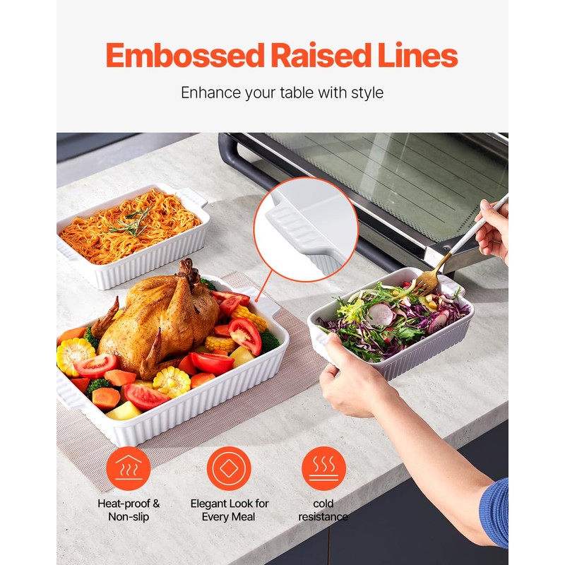 - Eye-catching & Elegant: With beautiful embossed lines outside, our ceramic bakeware looks modern and stylish. It's great for food photos and a nice gift for baking lovers or kitchen gadget fans.