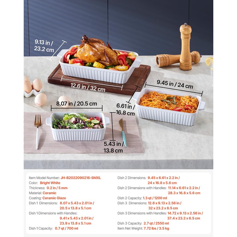 - Versatile Baking Pan: Our deep ceramic casserole dish set offers various sizes and capacities. It's durable and gives you more options for meals. Use it for casseroles, pasta, potatoes, and storing different food.