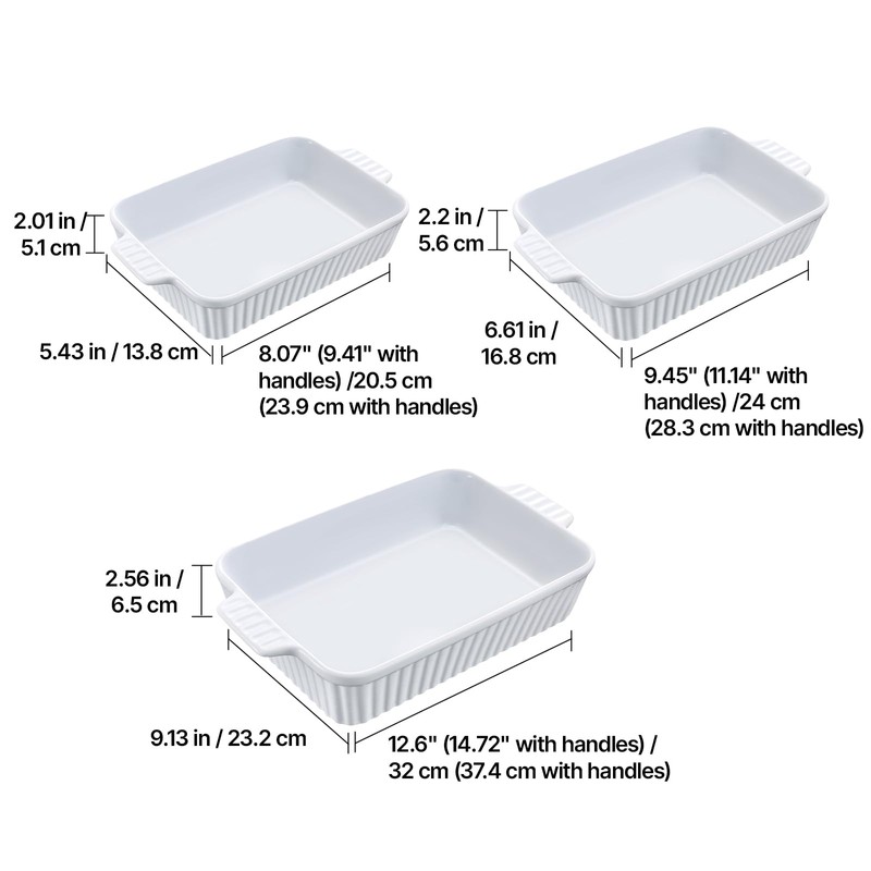 - Stackable Elegance: The ceramic baking pans have strong handles for easy handling and serving. They stack easily to save space and keep your kitchen organized.