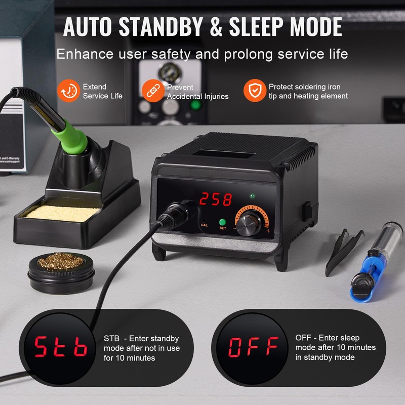 - Auto Sleep Feature: Enhance the safety of your soldering operations with automatic standby and sleep modes! These intelligent attributes protect the heating element, extend the station's lifespan, and minimize the risk of accidental harm, ensuring a safer and more productive soldering experience.
