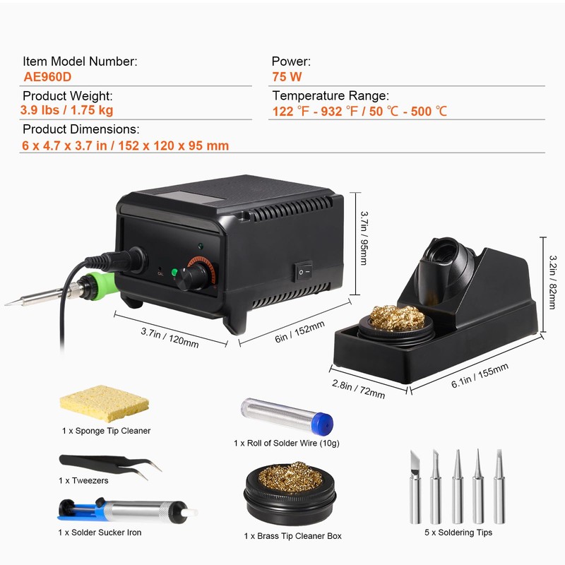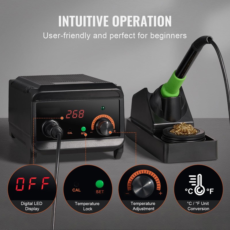- Easy of Use: This digital display soldering station provides intuitive operation with effortless temperature adjustment through the knob, a clear digital LED display, ℃/℉ unit conversion, temperature calibration and locking. Furnished with a wealth of accessories, it's ideal for both novice users and professionals.