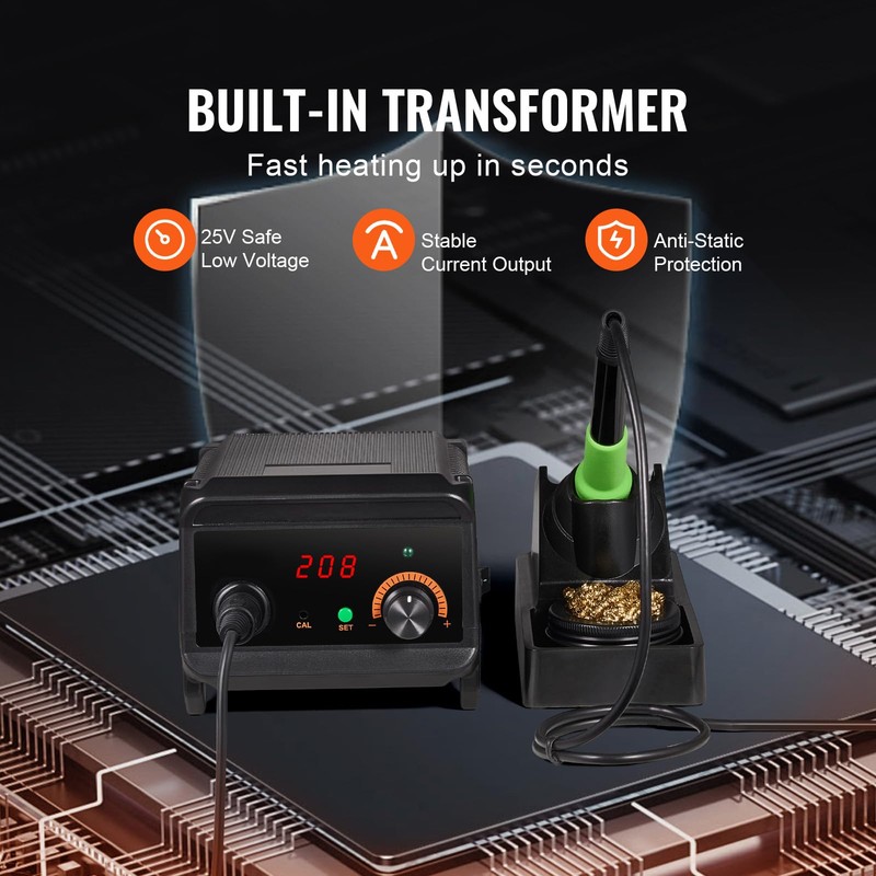 - Safe and Trustworthy: Equipped with a professional transformer, this soldering iron station guarantees safer and more efficient soldering. The 25V low voltage boosts safety and supplies a stable current with few fluctuations, protecting ESD-sensitive components and prolonging the device's operational life.