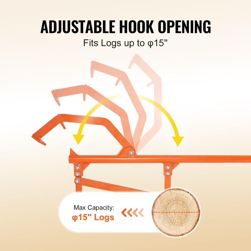 • Versatile Log Compatibility:The adjustable iron hook on Happybuy's log jack is a standout feature. Capable of managing logs up to φ15", it offers the flexibility to work with an array of log sizes, adapting to whatever the job demands.