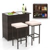 HAPPYGRILL 3 Pieces Patio Bar Set PE Wicker Outdoor Bar Table and Stools Set with Removable Cushions, Tempered Glass Tabletop and Storage Shelves for Porch, Backyard, Garden and Poolside