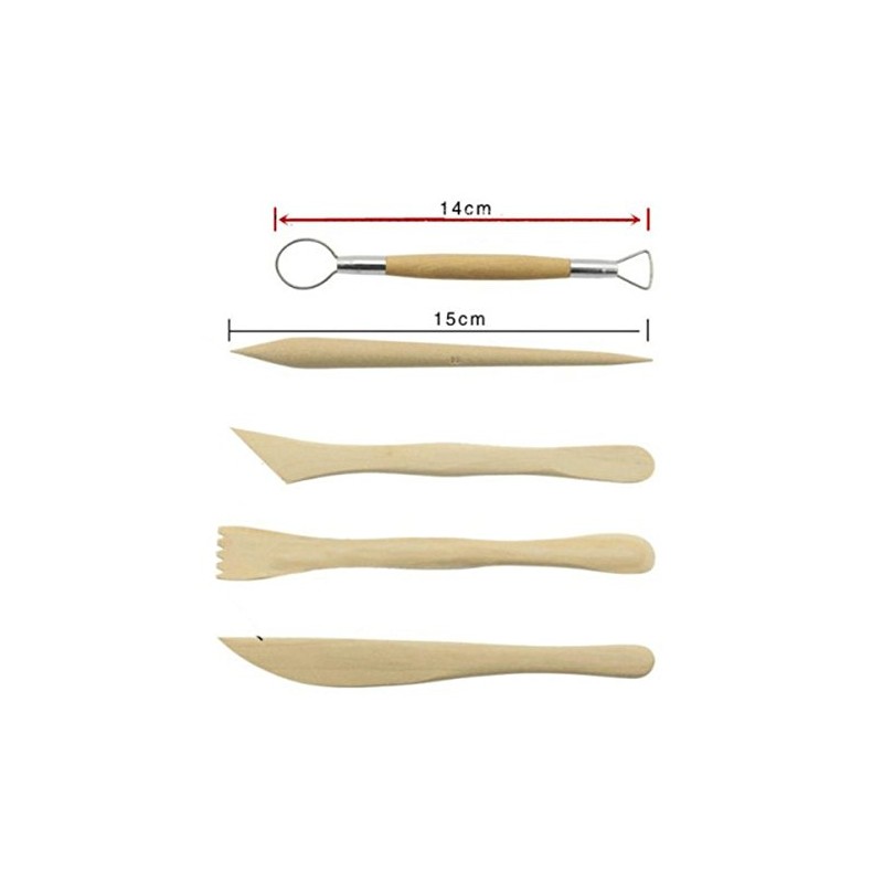 • Wooden Blade 1, Round Sponge 1, Stainless Steel Sharpener 1, Wood Sharpener 1, Handle Cutting Steel Wire 1, Dual Use Metal Ring Blade 1, Metal Ring Blade 1, Needle 1 (Lid Included) Wooden Spatula Tool 5 Pieces Material: Wood, Stainless Steel Shipping Weight: Approx. 7.1 oz (200 g) Kettle Clay