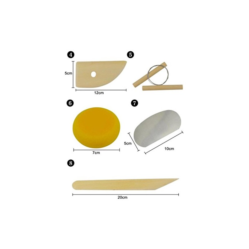 • This 13-piece set includes a stirrer, sponge, and stainless steel plate that is convenient for ceramics, sculptures, clay crafts, craft sticks, and figure making