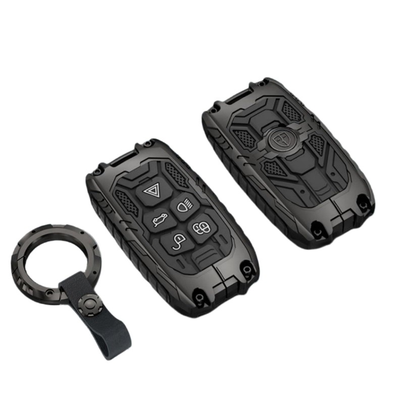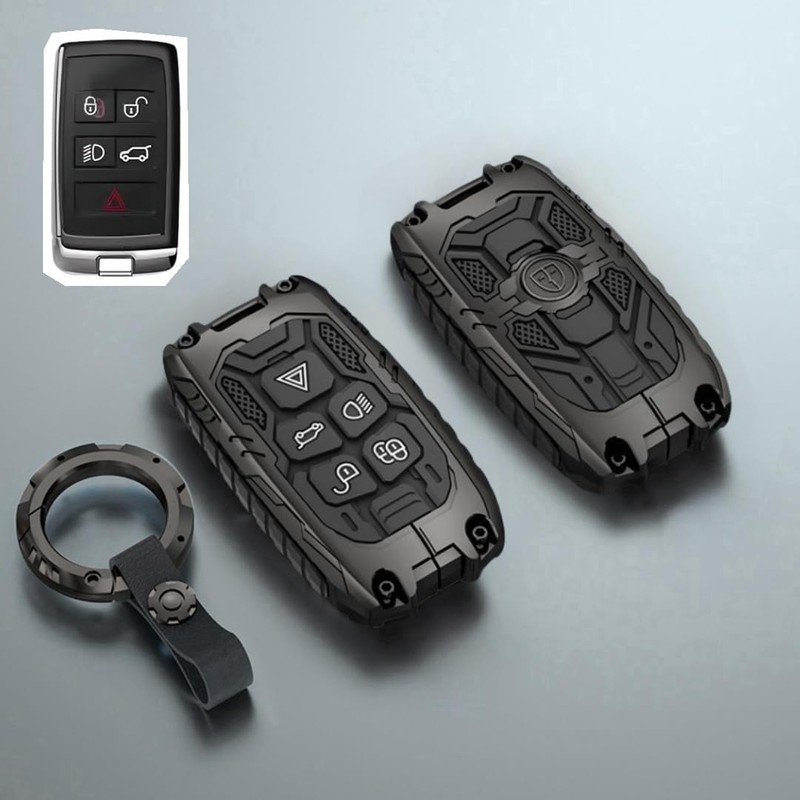 Happyit Zinc Alloy Car Key Case Cover for Land Rover Discovery Freelander Range Rover Sport Evoque2021-2024 5 Button (Black+Round Buckle)