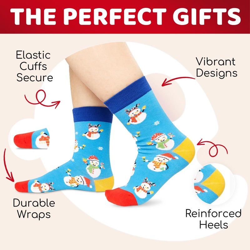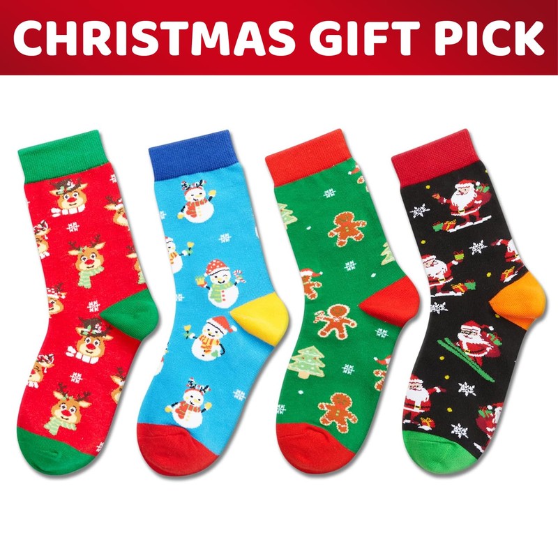 - CHRISTMAS SOCKS FOR KIDS: Festive Holiday Designs: Each pair of socks features a unique Christmas character—Santa Claus, Snowman, Gingerbread, and Reindeer—to bring the festive spirit to life. Perfect for kids who love Christmas!