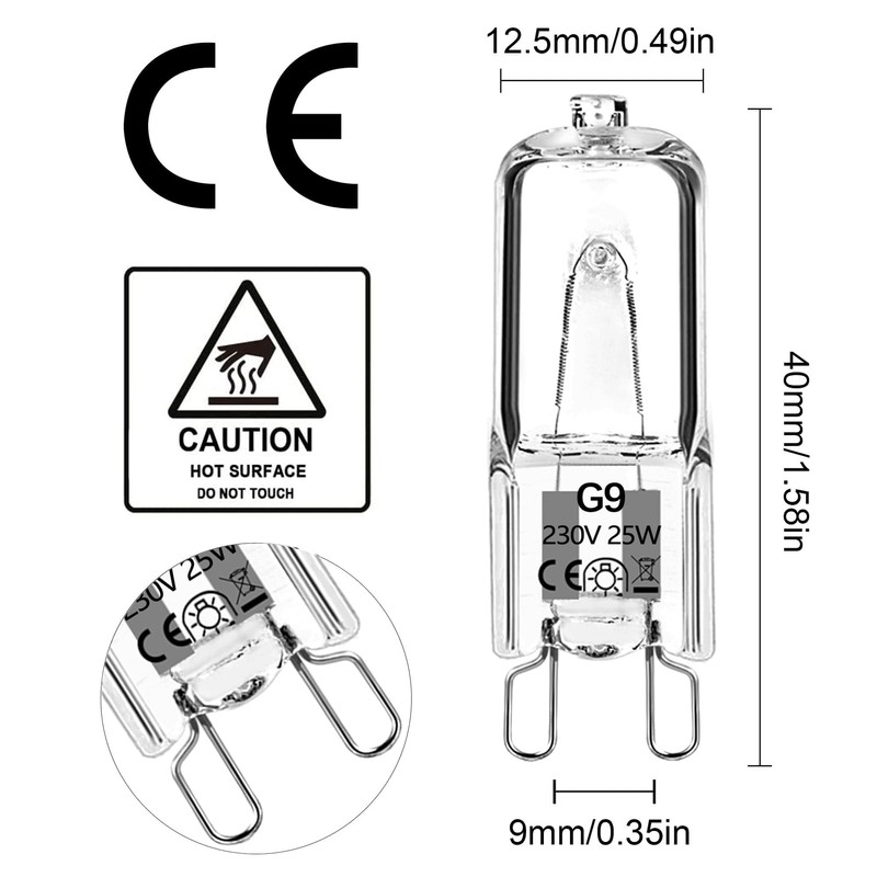 - Package Includes: 10-Pack 230V 25W G9 Halogen Bulbs