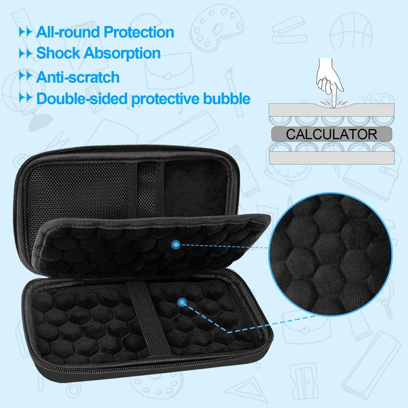 - Double-sided Bubble Protection: Made of durable EVA material that is waterproof and shockproof. The outer shell is strong enough to withstand impacts, and the inner layer is protected by double-sided bubbles that give the calculator a great deal of cushioning and help extend the life of the calculator.