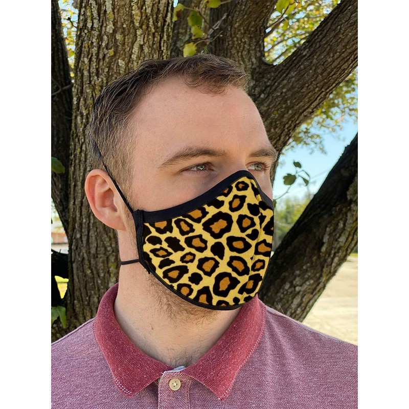 HARD EDGE DESIGN Two Layer Fully Wired Protective Cloth Face Mask - Soft Touch Adjustable Ear Saver - Made in USA - Cheetah, Adult