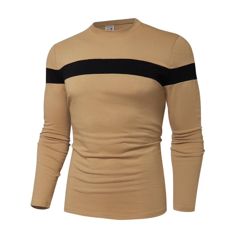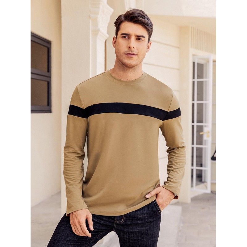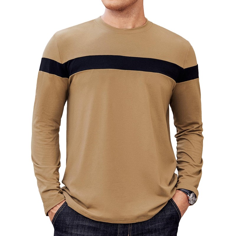 Hardaddy Men's Long Sleeve Tee Shirts Color Block Tee Pullover Casual Basic Shirts Khaki XL