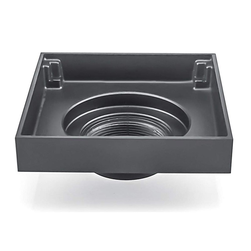 Hardbase Metal Bathroom Floor Drain Shower Drain 10cm Square Brass Built-in High Pass Filter Drain (Black)