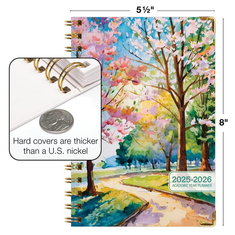 HARDCOVER Academic Year 2025-2026 Planner: (June 2025 Through July 2026) 5.5"x8" Daily Weekly Monthly Planner Yearly Agenda. Bookmark, Pocket Folder and Sticky Note Set (Watercolor Tree)