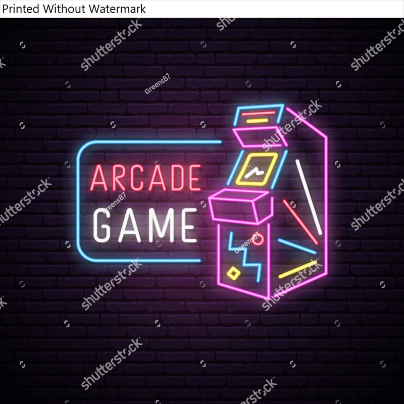 HardPress Wall Art Poster Print of Neon Sign of Arcade Game Machine. Neon Entertainment Emblem, Bright Banner. Advertising Design. Night Light Signboard. Illustration.