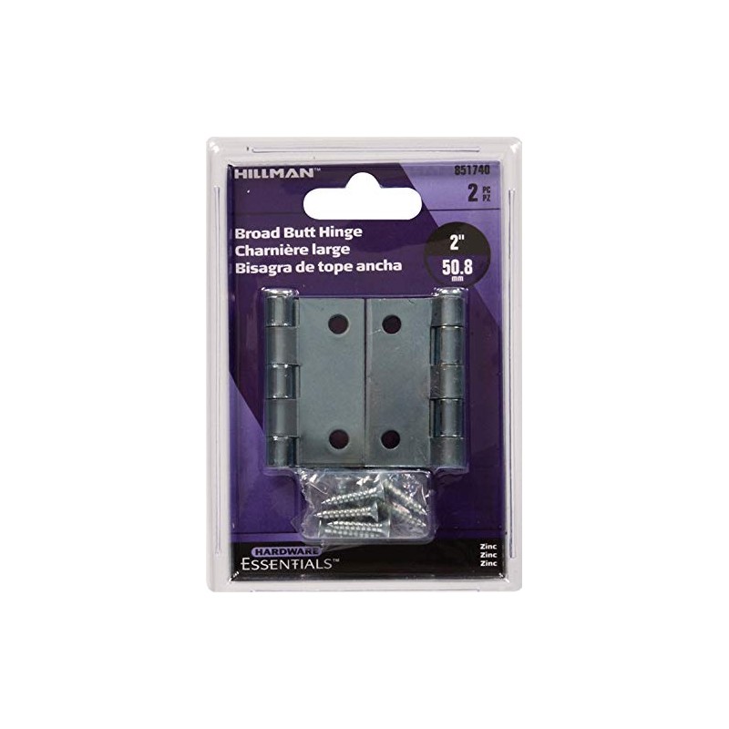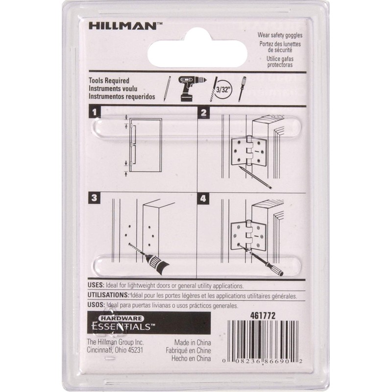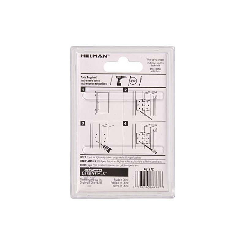 Hardware Essentials 851740 General Purpose Square Corner Hinges Fixed Pin Zinc-plated 2"