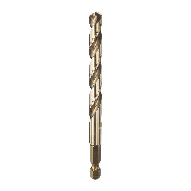1/4" hex shank fits all standard power tools and impact drivers and installs quickly and easily into quick-change chucks; the 135° split point design ensures accurate start and automatic centering, reducing thrust for increased drilling speed and accuracy.
