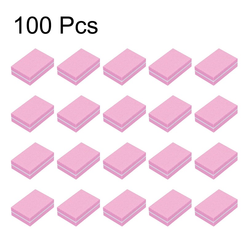 HARFINGTON 100pcs Mini Nail Buffers, 100/180 Grit Nail Sanding Blocks, Bulk Nail Buffing Polishing Blocks Professional Nail Polisher Set for Acrylic and Natural Nails, Pink