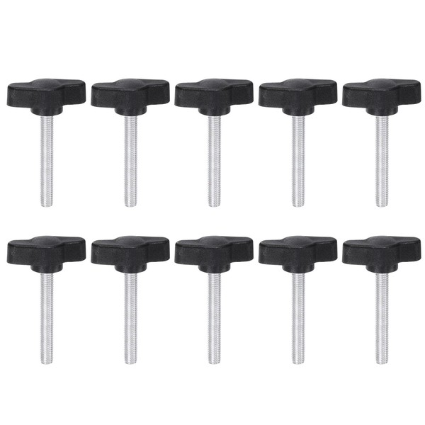 HARFINGTON 10pcs Tee Wing Knobs Thumb Screws M5 x 35mm Male Thread 27mm Plastic Head T Knobs Adjustable Handles Hand Clamping Knobs Grip Thumbscrew, Black