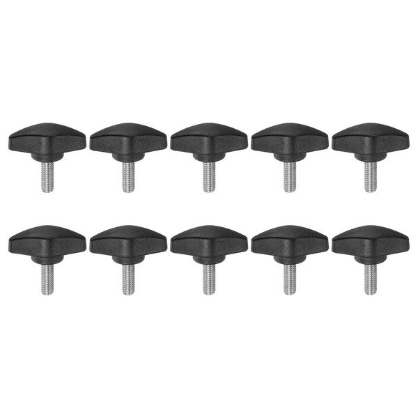 HARFINGTON 10pcs Tee Wing Knobs Thumb Screws M6 x 16mm Standard Male Thread Plastic T Knobs Handles Hand Clamping Knobs Grip Thumbscrew, Black
