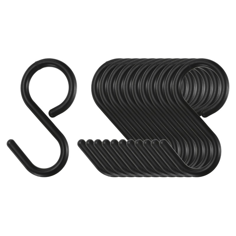 HARFINGTON 12pcs S Hooks, 3.5" Plastic, Black, Modern Style, Rust Resistant, 5kg/11lbs Capacity, S-Shape, Over-Existing-Structure Mounting, Ideal for Kitchen, Closet, Garden, Office