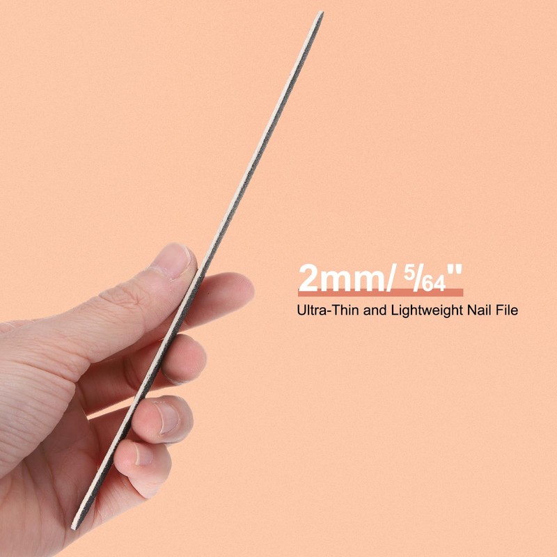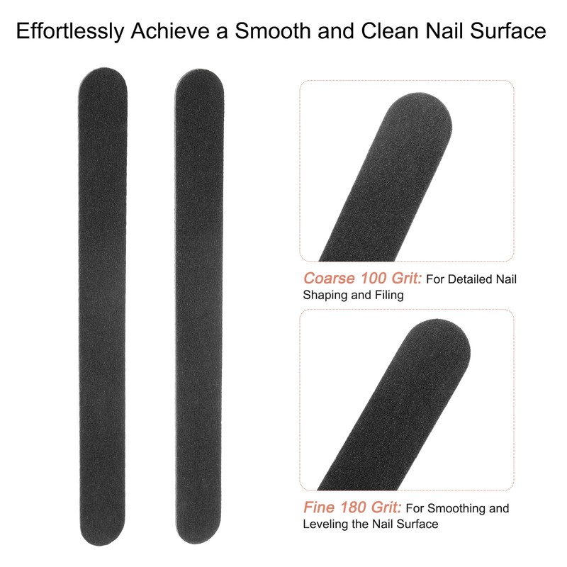 - Feature - Premium fine sand with balanced grit that prevents nail damage, featuring a uniform and durable abrasive surface. Dual-sided design with 100-grit fine side for shaping and smoothing nail edges, and 180-grit coarse side for effectively filing gel polish and acrylic nails.