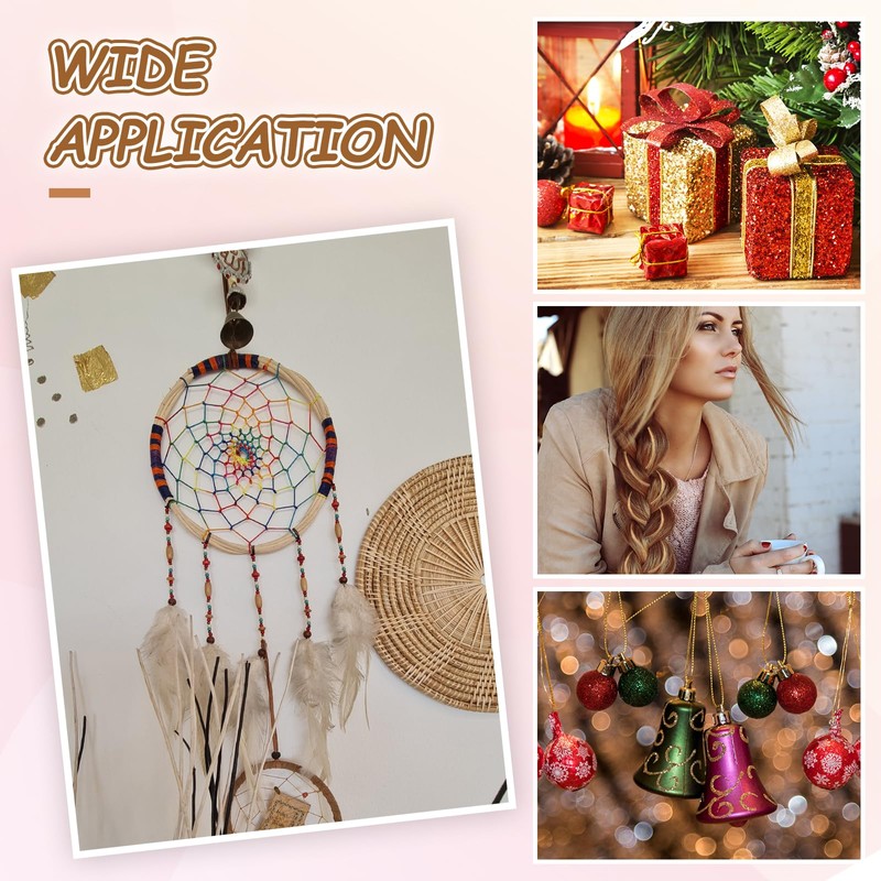 - Application - The metal elastic cord is widely used, suitable for beading, bracelets, gift box packaging, clothing making, tassels, hairbands, handicraft jewelry making, wind chime making, and Christmas tree decoration.