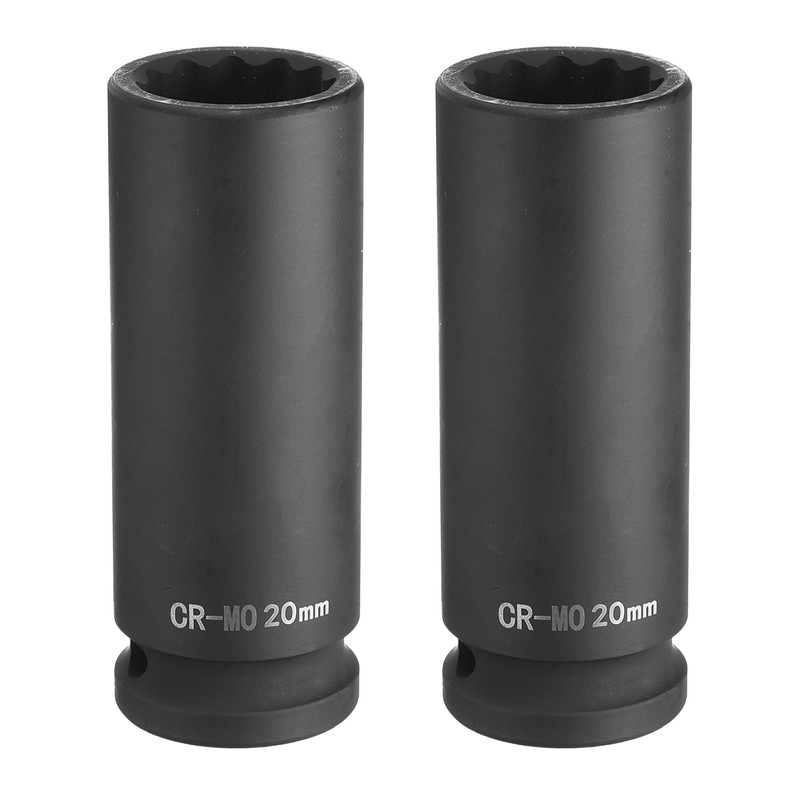 HARFINGTON 2Pcs 12-Point Deep Impact Socket 1/2 Inch Drive 20mm Metric Chrome Molybdenum Alloy Steel Spindle Axle Nut Impact Socket