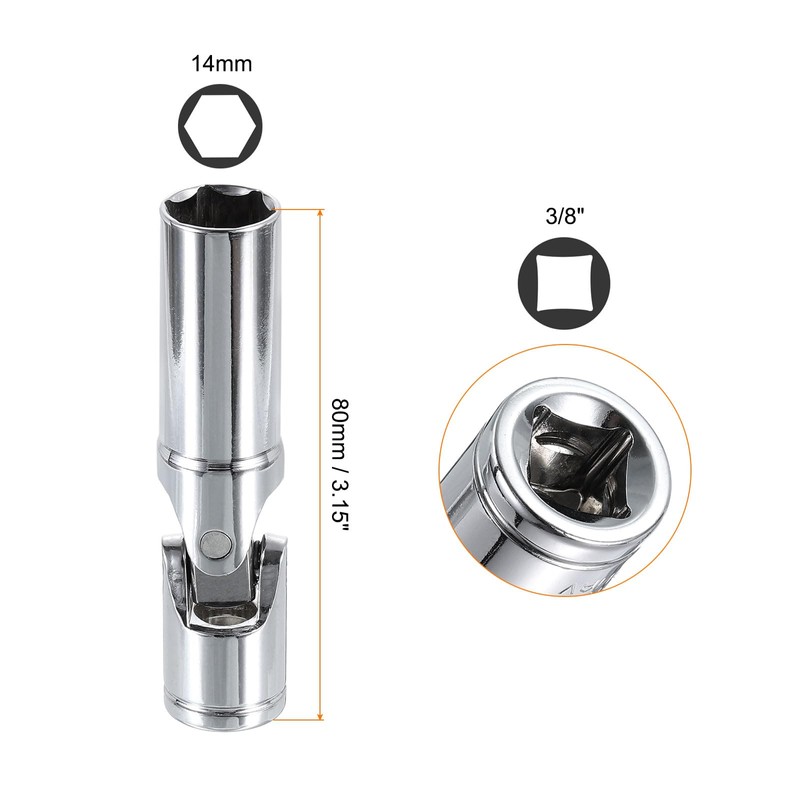 HARFINGTON 2pcs 3/8" Drive Universal Joint Socket 14mm CR-V Metric 6-Point Rotation Swivel Flex Socket