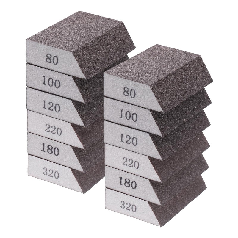 The sandpaper blocks come in different grit sizes, which determine the coarseness of the sanding surface. Lower grit numbers indicate a rougher surface for heavy material removal, while higher grit numbers signify finer surfaces for smoothing and finishing.