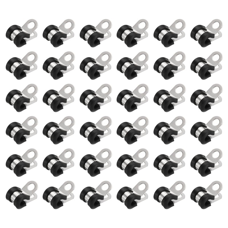 HARFINGTON 36pcs 304 Stainless Steel Cable Clamps 1/4 Inch Rubber Cushioned Insulated Clamp Metal Loop Pipe Clamp for Tube Pipe Wire Cord Installation