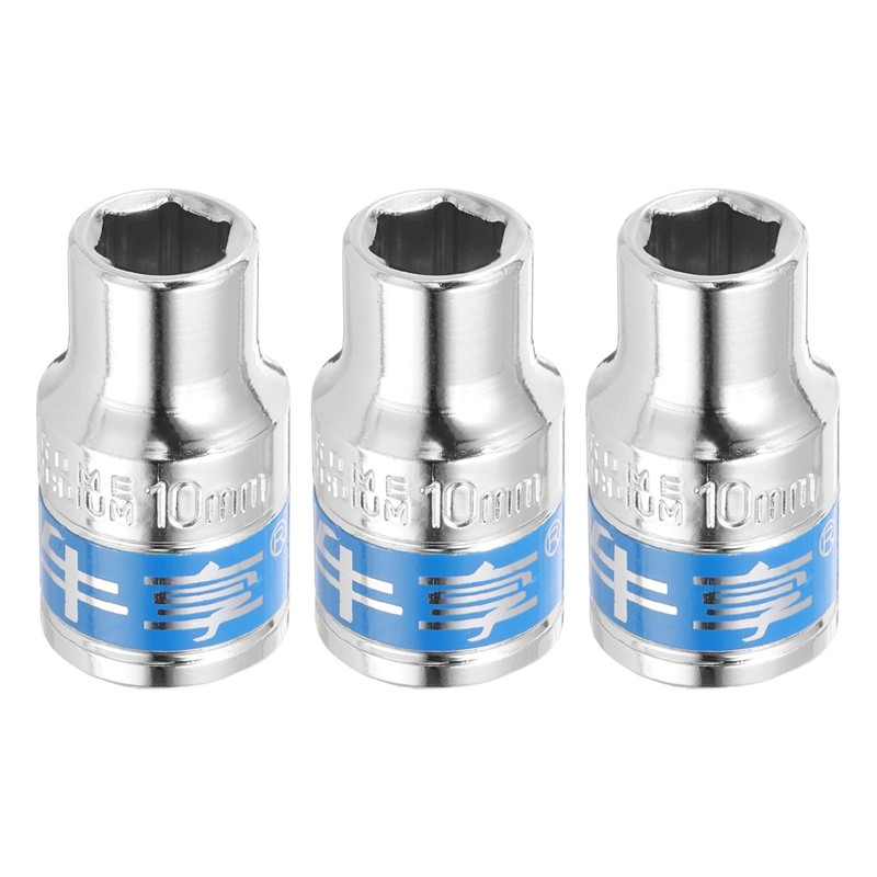HARFINGTON 3pcs 1/2 Inch Drive 6-Point Socket 10mm CR-V Metric Shallow Socket Electric Wrench Socket for Mechanical Auto Repair, Silver Tone & Blue
