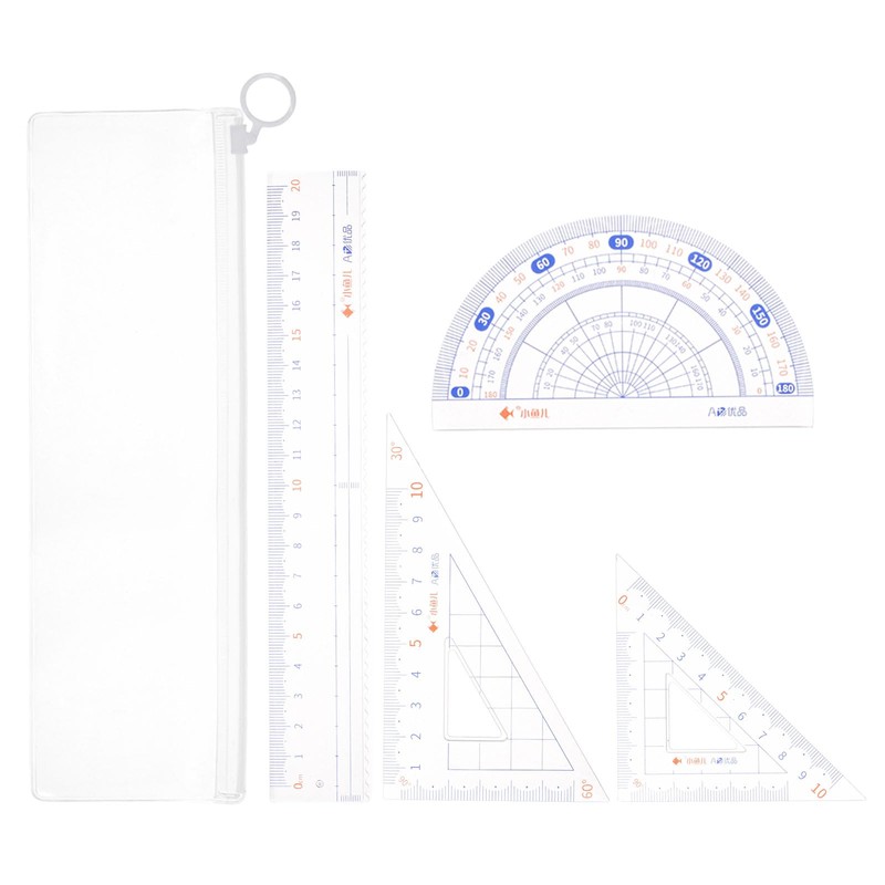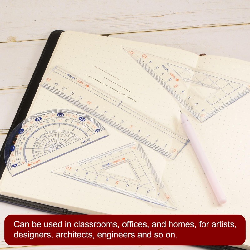 - Features - Both sides of the protractor can measure 0-180 degrees, and the scale is accurate to 1 degree, helping you to quickly measure the value. The 45-degree triangle ruler and the right-angle ruler are designed with a hollow in the middle, which is convenient for locating graphic points and drawing geometric figures.