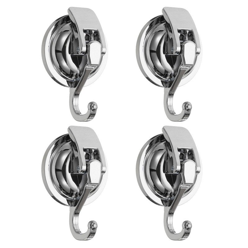 HARFINGTON 4pcs Suction Cups Hooks Powerful Vacuum Multi-Purpose Suction Shower Hooks Removable Reusable Waterproof Wreath Cup Hook for Bathroom Kitchen Restroom, Silver Tone