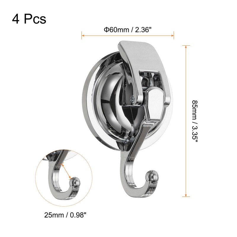 • Size - Diameter of Suction Cup: 60mm / 2.36"; Length: 85mm / 3.35"; Hook Spacing: 25mm / 0.98"; Max Load: 5kg / 11 Pounds; Package Include: 4 x Suction Cup Hook.