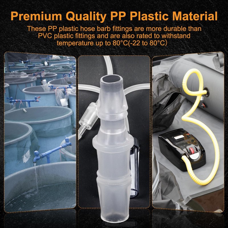 - Durable PP Plastic Hose Barb Fitting: Constructed from compliant polypropylene (PP) plastic, this connector is known for its low odor profile. It offers reliable connections for various water line connections, aquariums, and general fluid transfer applications where material compatibility and consistent performance are needed.