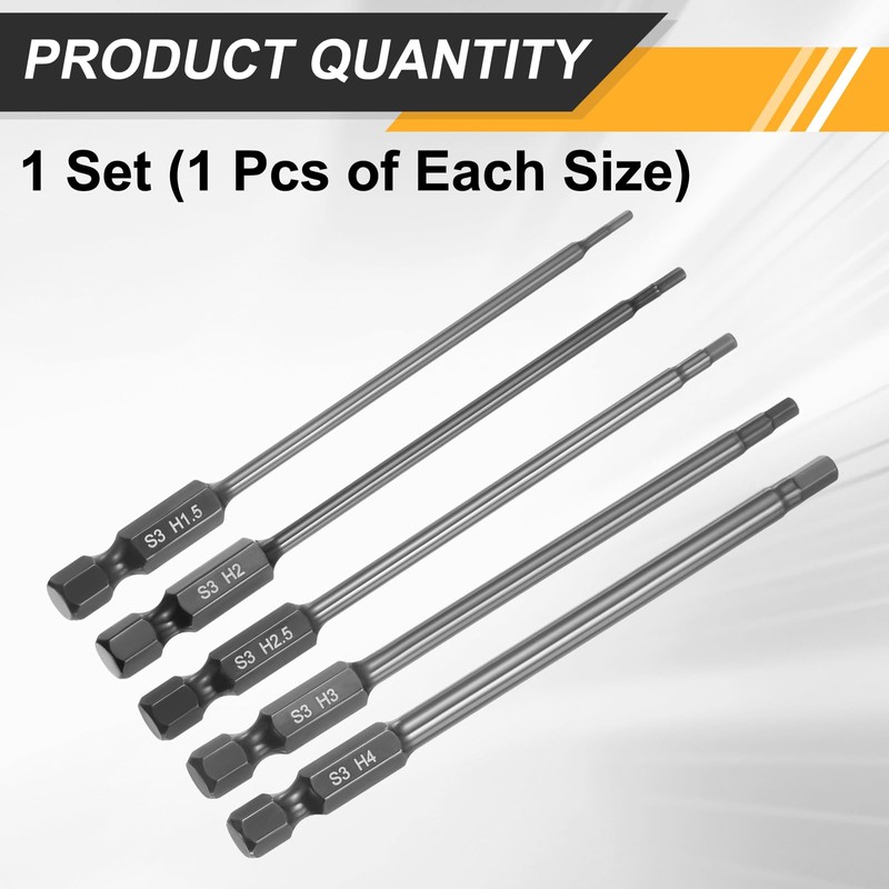 - Size - Metric flat hex head size: H1.5, H2, H2.5, H3, H4, hex shank size: 1/4", total length: 100mm / 4", hardness: HRC58-60 (The recognized stable hardness is around HRC60.). Each hex screwdriver bit is clearly engraved with size number for easy identification.
