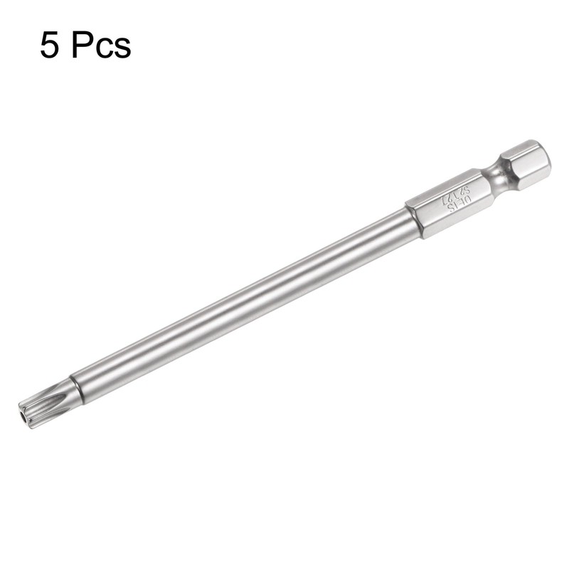 HARFINGTON 5Pcs Security Torx Bit 1/4" Hex Shank 4" Long Drill Bits T27 Torx Star S2 Steel Magnetic Tamper Resistant Screwdriver Bit