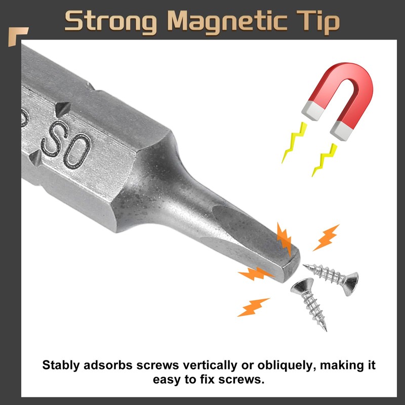 - Size - Bit Type: SQ0; Hexagonal Shank: 1/4"; Total Length: 25mm / 1"; The screwdriver bit is exquisitely made, each edge can lock the screws accurately, and will not easily damage the screws and screwdriver heads.