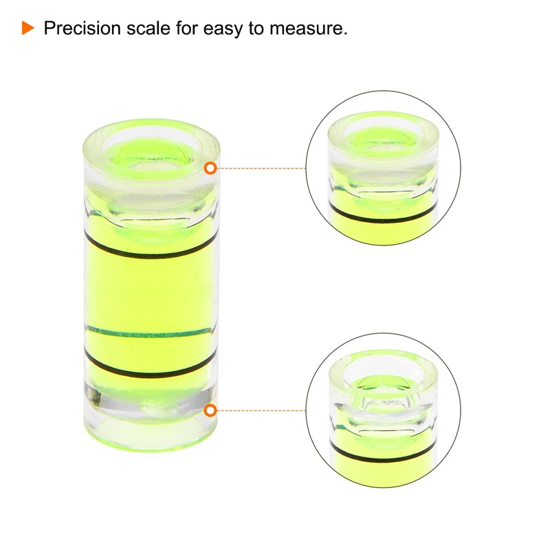 - Size - 7mm diameter and 16mm thickness small tiny spirit bubble level. The mini cylindrical level is small and easy to store. It can be placed in a drawer, tool bag or pocket to measure the instrument at any time