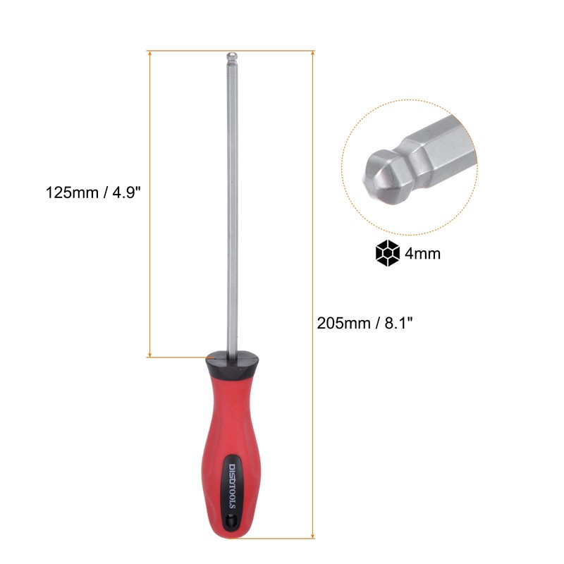 HARFINGTON Ball Head Hex Screwdriver 4mm x 125mm Magnetic Ball End Hexagonal Precision Screw Driver Hex Design Wrench