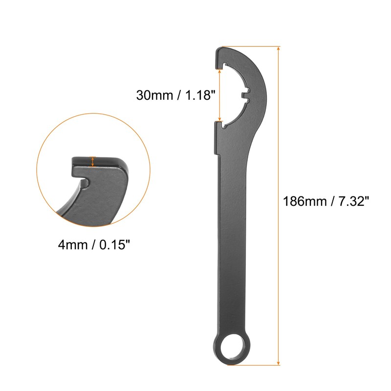 - Size - Fit for Black Style Nut, Overall Opening Width; 30mm / 1.18-inc; Size: 186mm / 7.32-inc; Material: Steel; Color: Black; 1 Pcs x C Hook Spanner Wrench
