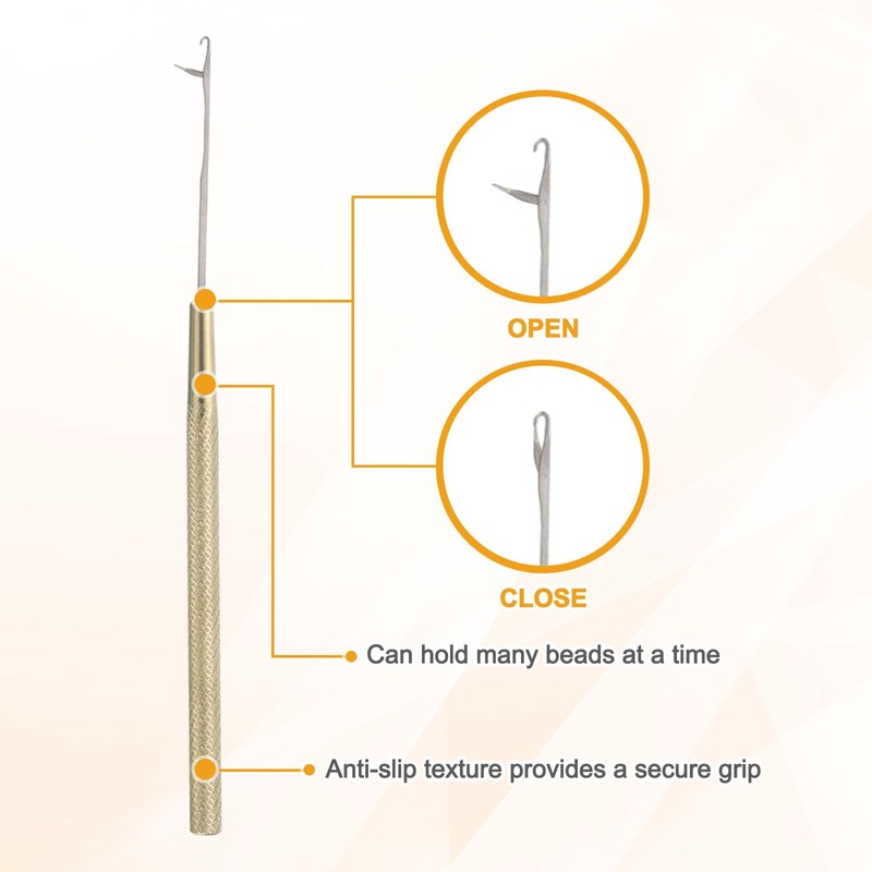 The needle handles design with anti-slip texture, providing better grip. Pulling hook and loop threader device can be used to grab hair and connect to hair extension beads or pull hair through micro link rings. Comes with a storage bag, easy to carry and use the hair extension tools without worrying about losing them.