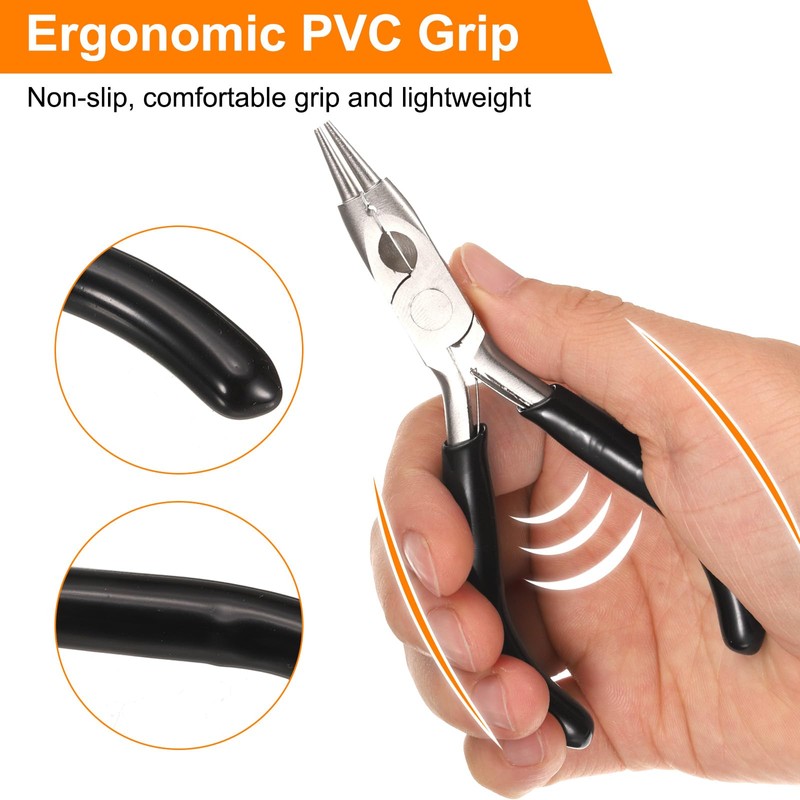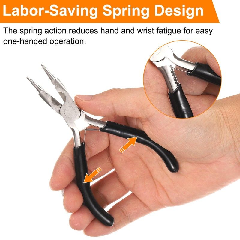 - Feature - The 4-in-1 jewelry pliers has a rounded needle-nose, cutter, flatten, and jump-ring shaping tool. The slim profile is not only lightweight but also suitable for small hands. Spring action reduces hand and wrist strain and allows for easy one-handed operation.