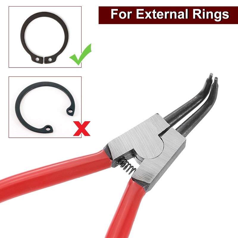 HARFINGTON Snap Ring Plier 7" External Circlip Pliers with 0.08" Bent Jaw Tip for Ring Remove Retaining Pliers, Red