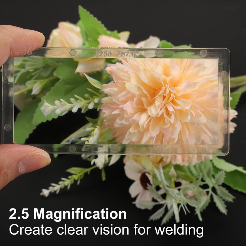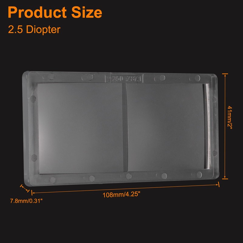 - Size - Total Size: 2" x 4.25" x 0.31" (L*W*T), 2.5 Diopter, Magnification Welding Lens offers a magnifying vision for welder by providing clear magnification of the welding area, provides a sharp and focused view of the workpiece.