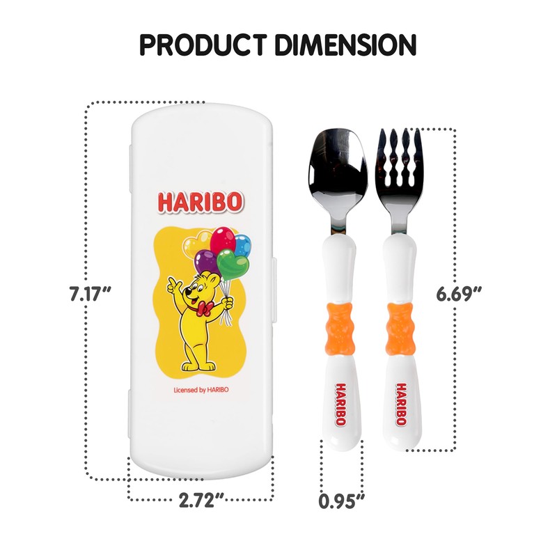 - ❤️Goldbear Figure Handle: Find the cute HARIBO Goldbear figure in the handle. Made of safe TPE silicone material, it makes it easy to grip the spoon & fork and prevents slipping from small hands *(Don't eat even though they are cute!)