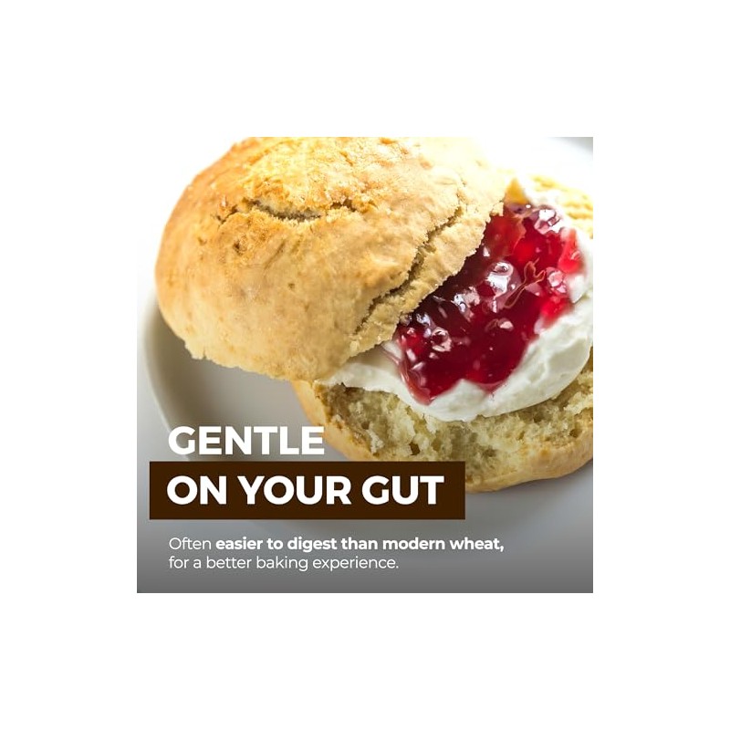 - Disfruta de una opción de harina de gluten más potable: como grano antiguo, la harina KAMUT es conocida por ser más tolerable para aquellos con sensibilidad al gluten en comparación con las variedades modernas de trigo. Sin embargo, ten en cuenta que aunque el contenido de gluten de la harina KAMUT es diferente al del trigo moderno, contiene gluten y no es adecuado para aquellos con sensibilidad celíaco o extrema al gluten.