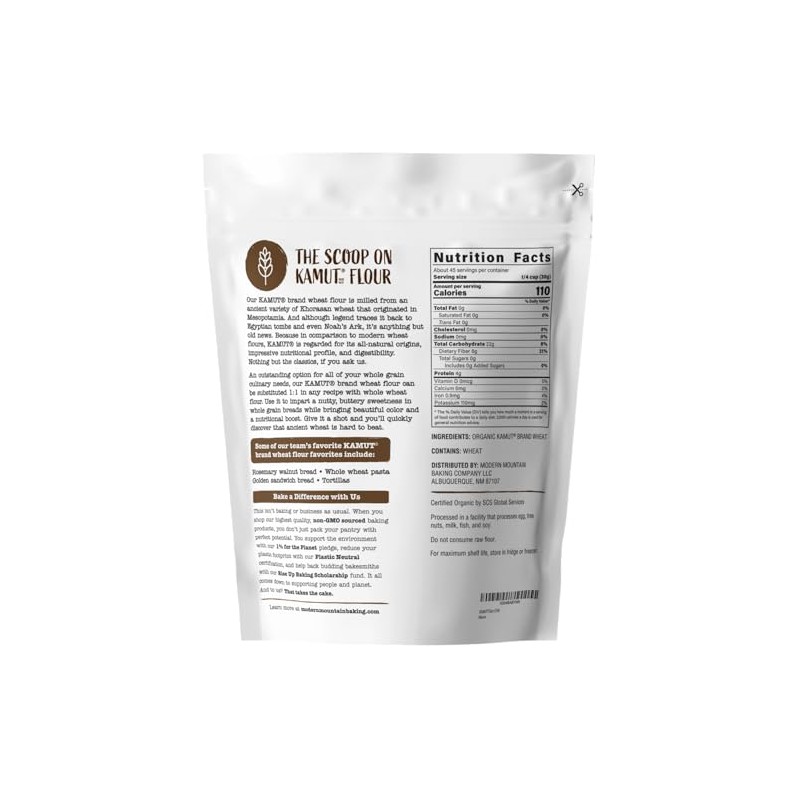 - Logra un increíble sabor de grano entero: con su dulzura nuez y mantecosa, la harina KAMUT es conocida por el delicioso sabor que le da a panes de trigo entero, productos horneados y mucho más. Simplemente sustituye 1:1 por cualquier harina de trigo en cualquiera de tus recetas favoritas y espera a ser sorprendido.