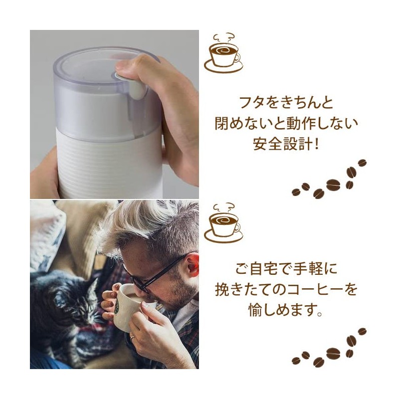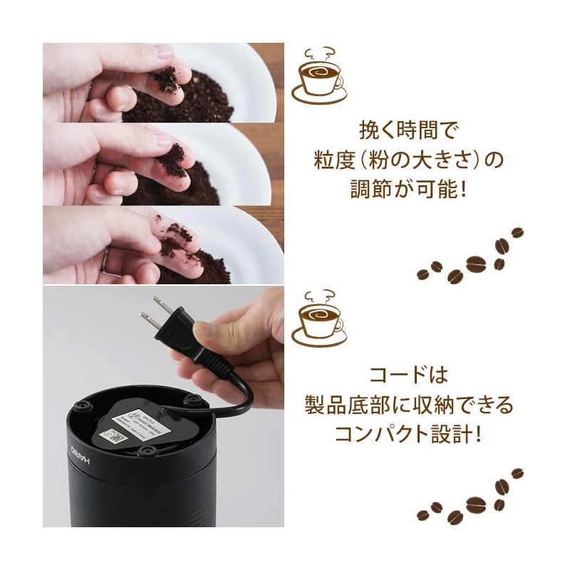 HARIO EMCS-5-W Coffee Mill, White, Electric Coffee Mill, Switch, 2.5 oz (70 g)